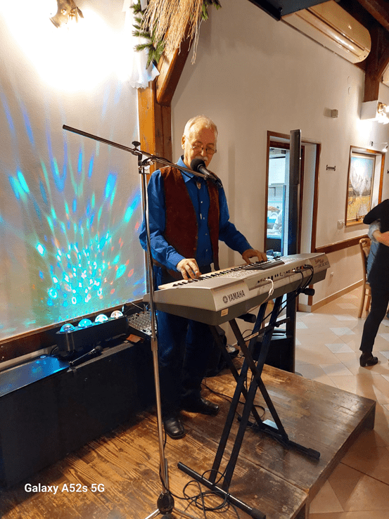 Vstopili smo v novoletno okrašeno jedilnico Jamarskega doma, pogled se je ustavil na praznično pogrnjene mize ter prijazno gostinsko osebje. Praznično vzdušje je nadaljeval naš Mauro, razstavil je glasbene instrumente, kable, mikrofone… ki smo jih pripeljali s seboj in že so se razlili zvoki znane melodije. Pozdravila nas je predsednica DU gospa Sonja Šinigoj in poudarila pomen prazničnih srečanj, povezovanj med člani in druženj.