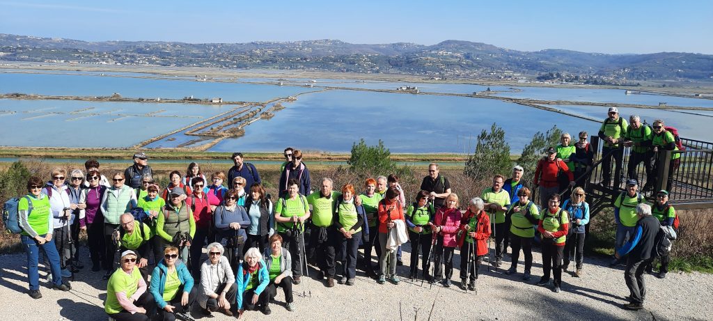 Četrtkovi pohodniki za dušo in srce smo se podali na drugi del Parenzane, do Kaldanije. Pot smo začeli po nasipu na novo urejene kolesarske in pešpoti, ki vodi ob Kanalu sv. Jerneja. Kmalu se spremeni v precej zaraščen potok, zavetišče mnogim pticam. S severne strani parka, imenovan Lera, še poteka pridelava soli, v južnem delu parka Fontanigge pa je pridelava soli opuščena.